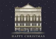 Three cards, with two festive designs and one photo of our beautiful auditorium. Design credit Ben Holland and Sarah Sutherland (Street Doodler).